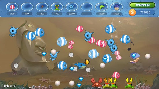 同时,游戏也遵循自然界食物链的法则,大鱼吃小鱼,小鱼吃虾,其乐无穷。