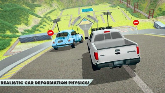 3、通过跨栏和斜坡特技在汽车跳跃竞技场中享受逼真的车祸事故。