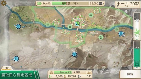 3、胜利条件:将全区域的稳定度达到100%是唯一的胜利条件