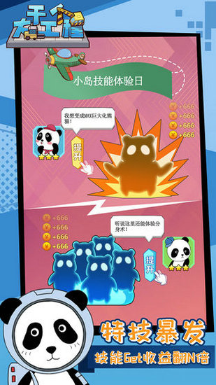 干个大工程破解版以熊猫为主角,采用清新可爱的画面风格塑造出多个萌趣场景,赋予玩家轻松愉快的体验感受。干个大工程破解版中,玩家将扮演神秘小岛的管理者,你需要通过招募工人来完成各种各样的工程建造。这里还有大量奇迹事件可供探索,你将发现更多神奇有趣的内容。整体玩法还是比较多样有趣的,让玩家在这里感受轻松的经营体验,特别适合用来打发无聊时光。