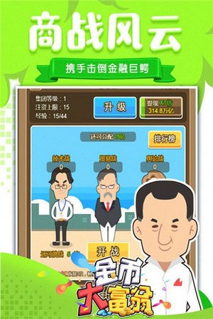 金币大富翁官网版是卡通画面的模拟经营游戏,金币大富翁官网版能为你带来最丰富的的商业帝国玩法,让你可以真正的实现从默默无闻登到人生巅峰的乐趣。招募人才,进入金融战场,还能允许独特的猎偷机制,让你快速聚集财富。它能让你感受创业和守业的艰辛,为你带来诙谐幽默的各种创业剧情。