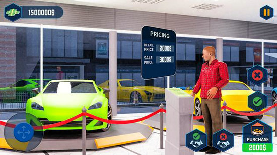 3、购买新车和二手车,将它们放在展厅中出售,并在汽车经销商工作模拟器中赚钱。