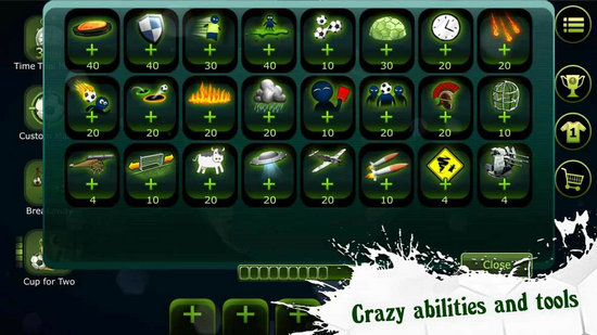1、FootLOL允许您使用地雷,盾牌,外星人,母牛,枪支以及更多其他作弊手段来消灭对方的队伍并保护您的球员。