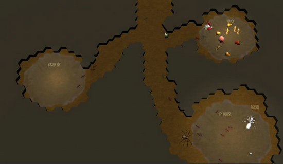 2. 玩家通过上帝视觉操控蚂蚁外出觅食、收集食物资源、保护蚁后、培育蚁蛹、与各类昆虫作斗争。
