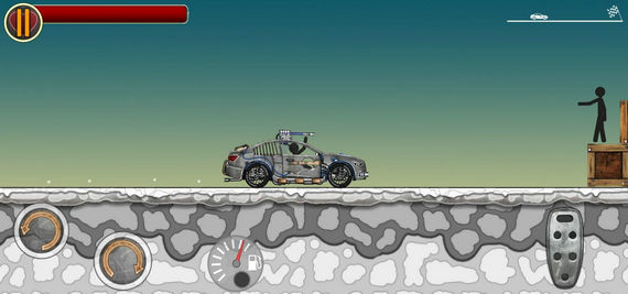 1、在途径的路上会遇到其他火柴人的射击,利用汽车装备的武器将它们击杀。