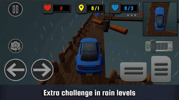 2、玩家将驾驶自己的汽车,在各种不同的关卡场景中完成停车。