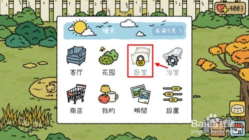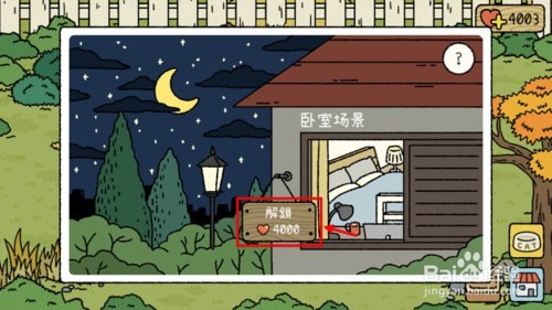点击“卧室”选项,解锁卧室需要积攒4000爱心值。