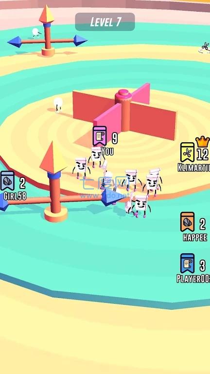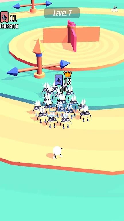 1、随意滑动屏幕控制角色移动,获取更多的白色小兵,相当的有趣;