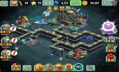 在故事方面,游戏也不再采用前作中的线性流程,而是让玩家随意在地图上移动,除了主线关卡外还存在不少分支,这些分支关卡需要玩家凑齐钥匙/星星才能进入,成功通过支线关卡能获得一些额外的奖励,除了全新的植物外,还有各类升级奖励,例如更多的卡片槽、初始阳光和小推车,这些奖励能在地图上随时查看,十分方便。