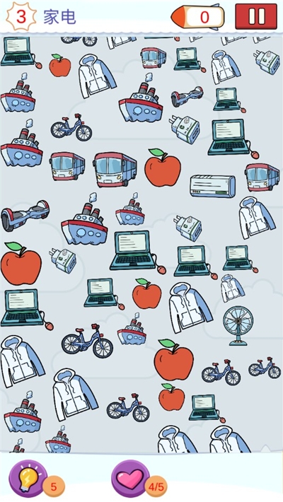 2、每一关中玩家都是需要在一大堆的东西中寻找到关卡要求的东西;