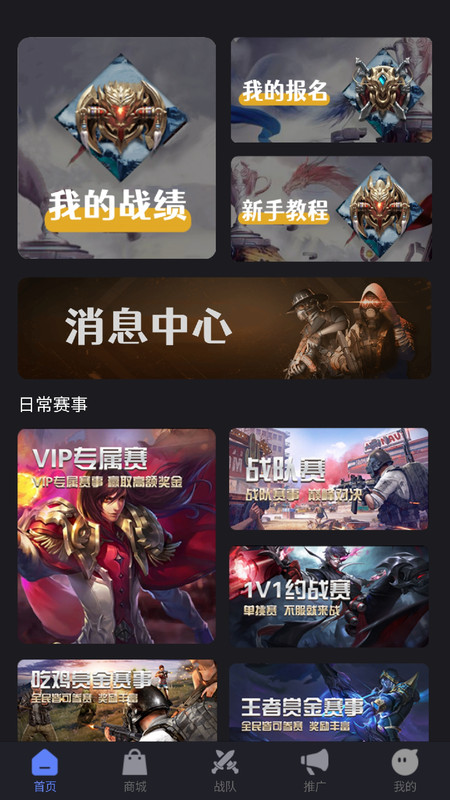 一款同时满足电竞职业选手和普通电竞爱好者举办和参加电竞比赛需求的应用软件。