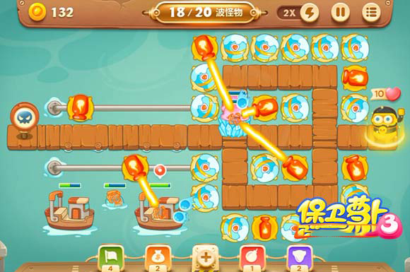 花样玩法,挑战升级,游戏加入了全新的滑道模式、好友互相PK的糖果赛玩法等诸多新奇玩法。是单独进行塔防战斗体验趣味的滑道模式,还是与好友比拼在糖果赛上初露头角,尽在玩家一念之间。