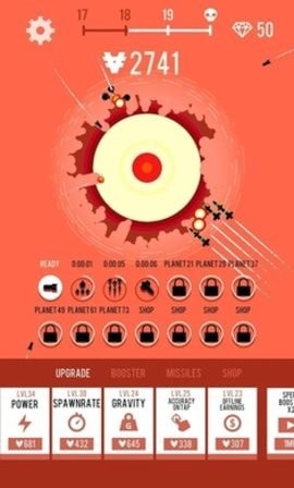 3、离线也会为带来不错的收益,完成一系列星球关卡挑战,享受星球轰炸带来的无限快感。