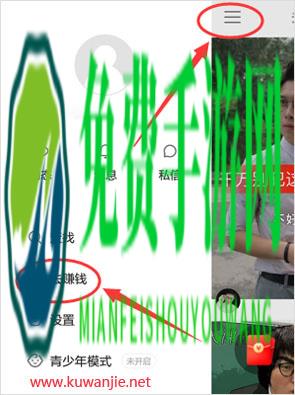 1、通过本站下载安装好快手极速版APP,使用微信号或者是手机号注册登陆,在我们的个人中心页面,点击右上方的三条横杠,接着点击【去赚钱】,如下图所示;