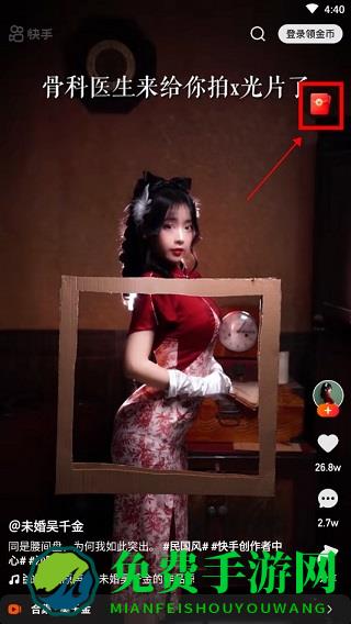 刷视频的赚金币的话,则是在视频周边的这个红包这里,视频在播放的时候这个红包会转动。