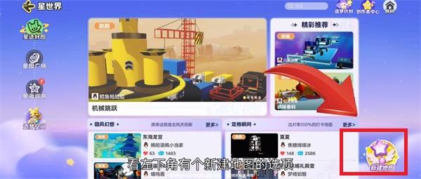 1、想要自制地图就需要进入游戏,在游戏界面点击左上角的【星世界】进入到地图功能界面之中;