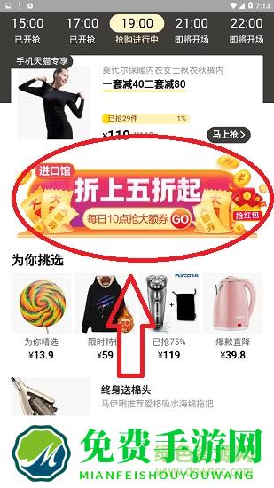 一、在商城首页直接点击“限时抢购”即可进入活动界面。