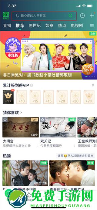 1、在免费手游下载安装爱奇艺app最新版本,打开软件就会看到首页、随刻视频、会员、发现、我的五个板块,在首页中有着直播、推荐、创世纪、如意、热点、电视剧等诸多频道。