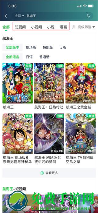 2、当然,用户也可以点击上方的搜索栏来寻找想要看的电视剧,如输入航海王三个字,就会出现一系列与之相关的关键字,点击你所需要的即可。