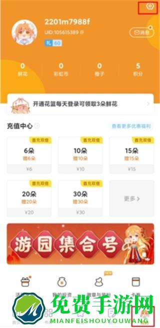 1、在我的页面中点击右上角的设置按钮;