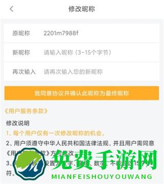 4、就可以修改自己的昵称了,记得查看修改说明。