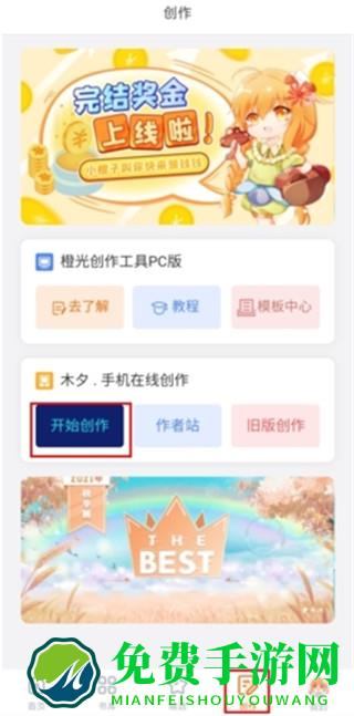 1、在创作页面中点击开始创作按钮(橙光创作工具只能在pc端);