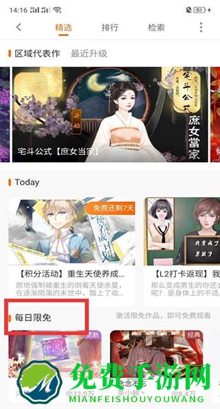 -今日免费机制,每天两款免费作品轮换。