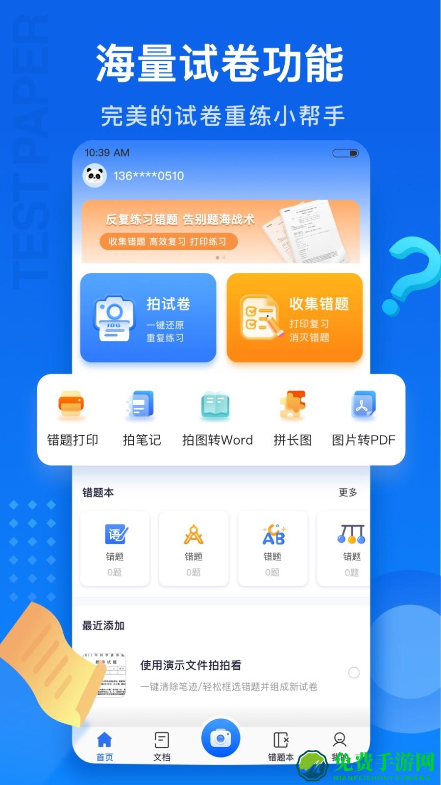 试卷100app是一款非常好用的帮助大家整理试卷错题的好帮手,轻轻一扫,还原空白试卷,高效分科整理错题,帮大家提高学习效率,软件支持导出PDF,提供收集试卷、重新练习试卷等丰富功能,智能将不同的科目进行分类管理,十分便捷。