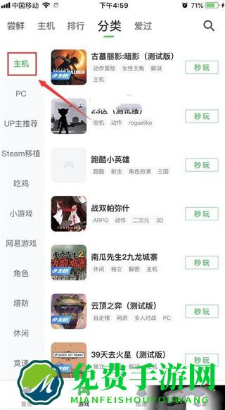 3、选择下方标注位置的主机游戏,进入主机游戏专区;