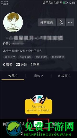 6、已拥有限时可见功能的用户,可参考以下教程:打开抖音短视频,在首页点击下方的【+】进入拍摄视频创作页面。