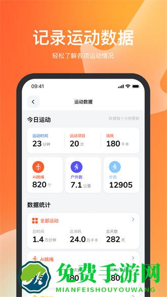 智能AI互动计数,免去额外硬件,轻装上阵做运动。手机对准人体,与屏幕中的元素进行互动训练得分。实时自动记录训练成绩,统计成长数据,一起达成每日运动目标!