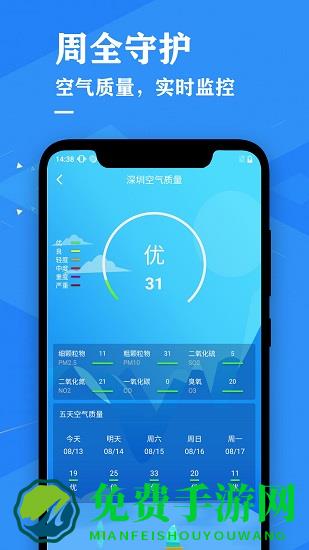 1、空气质量报告,实时更新pm2.5及aqi指数预报,关心天气,关心健康生活