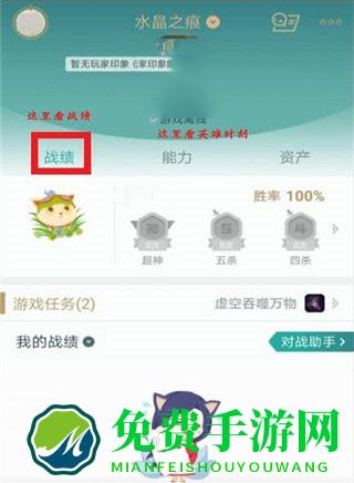 1、打开“战绩”页面,轻点此处,以往的战绩都会清晰浮现。