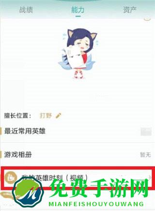 2、再移至上方“能力”字样处,这里有最近常用到的英雄,包括擅长位置等资料。