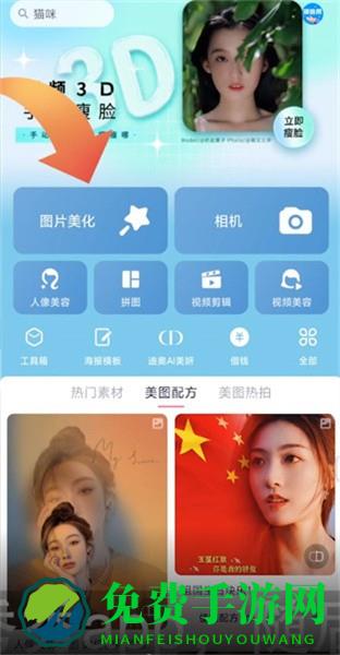 1、首先我们通过本站下载安装好软件后,点击进入软件,在软件的首页给大家提供了图片美化/人像美容/拼图/视频剪辑等多种功能,那么抠图放在另一个图片上,则是在图片美化功能中进行,我们点击【图片美化】进入;