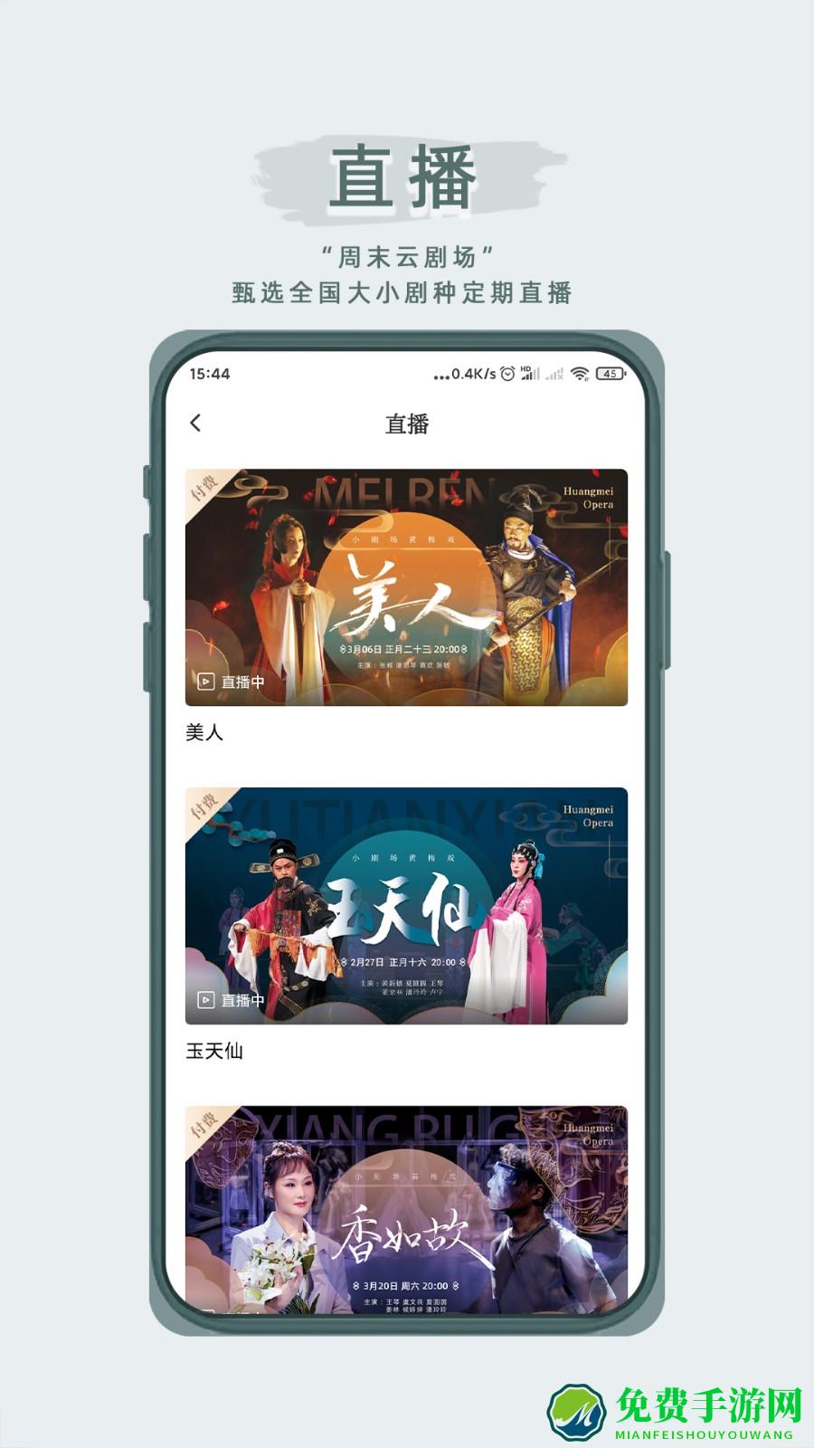 1、周末剧场:为用户提供周末剧场,每周定期更新最受欢迎的戏曲剧目,度过精彩的周末时光;