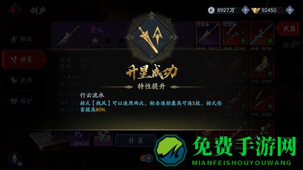 玩家可以通过升星系统,消耗材料将某件武器或防具进行特性强化,在应对敌人时更加自如。