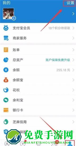 第一步,打开我们的支付宝,选择我的界面,点击“设置”。如下图所示: