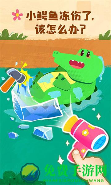 长颈鹿为了吃到高高的树叶,脖子骨折了,宝宝快来医治!接好断裂的骨头,上夹板、缠绷带,医治完成。老虎皮肤发炎,痒得受不了,快快帮它涂抹药膏......还有小猴等动物也需要救助!