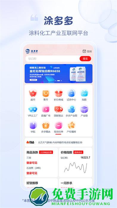 涂多多app是一款湖工涂料产品现货交易平台手机移动应用软件,意在为化工涂料商家与求购者搭建一个便捷高效的交易平台,提供专业化、全面化、透明化的服务,为双方达成满意合作提供优质平台,有需要的朋友快来下载吧!