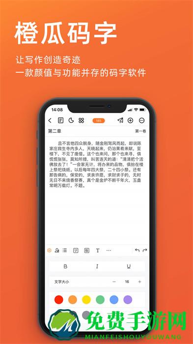 橙瓜码字是一款专为文字工作者打造的排版打字软件。支持一键排版、自动实时储存、统计等功能。还能与网文大神在线交流写作心得,学习写作技巧。橙瓜码字app是一款超级实用的打字应用,有了它,你就可以随时进行排版文字,这样对于需要写文字的用户来说很实用哦,你写的文字可以发布朋友圈,可以与好友一键分享,不少的作家都在实用它来写作哦,这样大大提高了工作效率,操作也比较简单,功能强大。如果你也是作家你还在犹豫什么,快来一键实用吧,你的文字可以批量保存!热点资讯应有尽有-实名,匿名随时切换身份,作家大V就在你的身边,匿名聊天让你摆脱社交尬聊,看新闻,看八卦、看美女,看帅哥,这里与你更合拍人人都是原创作者-发布自己的头条文章、与千万网友在网文圈参与热点讨论,文章头条精彩纷呈。