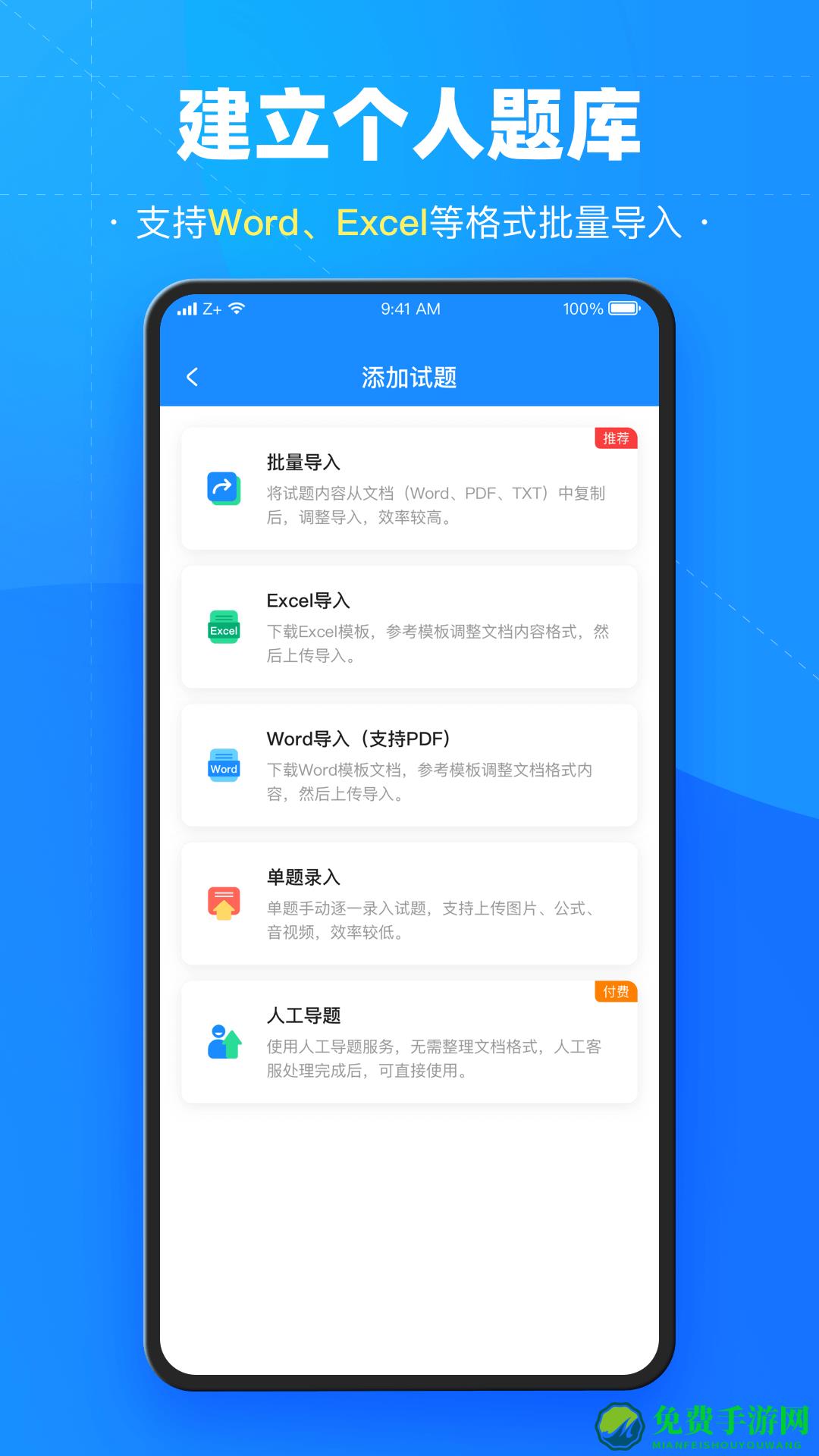 选择需要测试的考试科目(题库内容),设置练习的题型和分数以及考试时间,系统可以高效的随机组卷进行真实的考试模拟,支持判分,可以有效的帮助您巩固学习成果,提升学习效率。