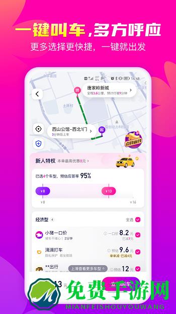 花小猪为你提供新的出行选择,打车更便宜, 安全有保障,让你的每次出行更舒心,超值优惠齐分享,邀请好友助力,瓜分高额红包,一起出发吧!