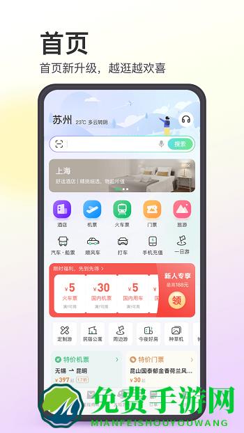 2.景点门票:全国海量景点优惠订,快速出票,支持扫码入园,免排队。门票特惠5折起!