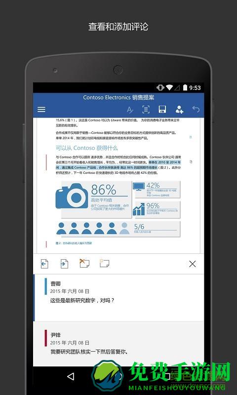 microsoft word手机版是一款手机端的文档处理软件,让您随时随地都可以移动办公,而且当您编辑文档时不必担心在不同的设备上内容和格式不一样,和电脑word是同步的,欢迎来到免费手游网下载。