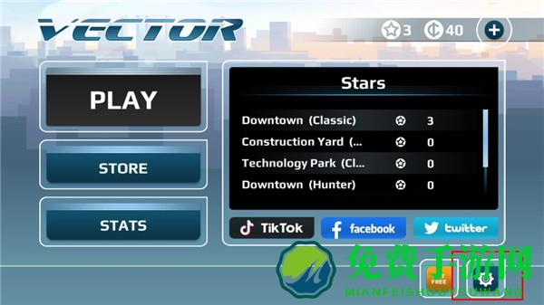 1、在免费手游下载矢量跑酷中文版,进入游戏界面,点击右下角齿轮。