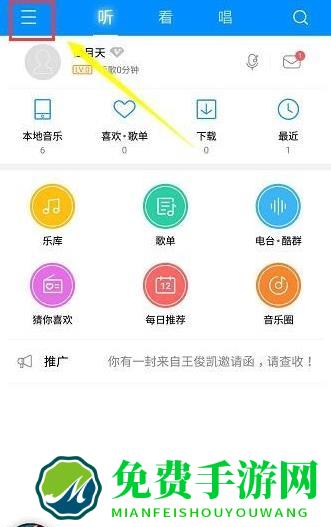 1、在免费手游下载最新版本的酷狗音乐,启动你的手机酷狗音乐,登陆你的账号,它支持微博、qq和微信等账号的登录