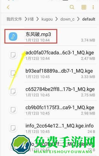 8、听完后,打开手机我的文件,依次存储中的Kugou——down_c——default,找到最大的一个文件