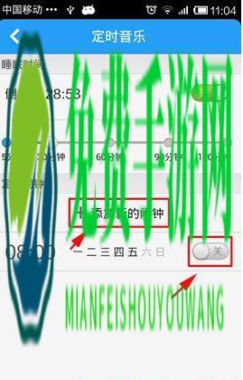 2、点击“定时音乐”进入界面。在睡眠时间倒计时点击开启按钮,刚开启时是设定为5分钟后退出,你可以根据实际情况设定播放器将在多少分钟后自动关闭