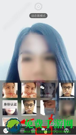 2、然后,点击箭头所指的一个人脸,一个相机的位置!选择好你要变的脸,你可以实现保存好你要变脸的图片到手机,选择它就可以变脸啦!